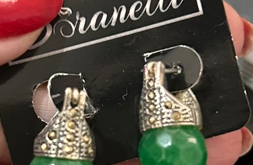 Brinco em prata 925 com detalhes em macassita e pedra natural esmeralda indiana.